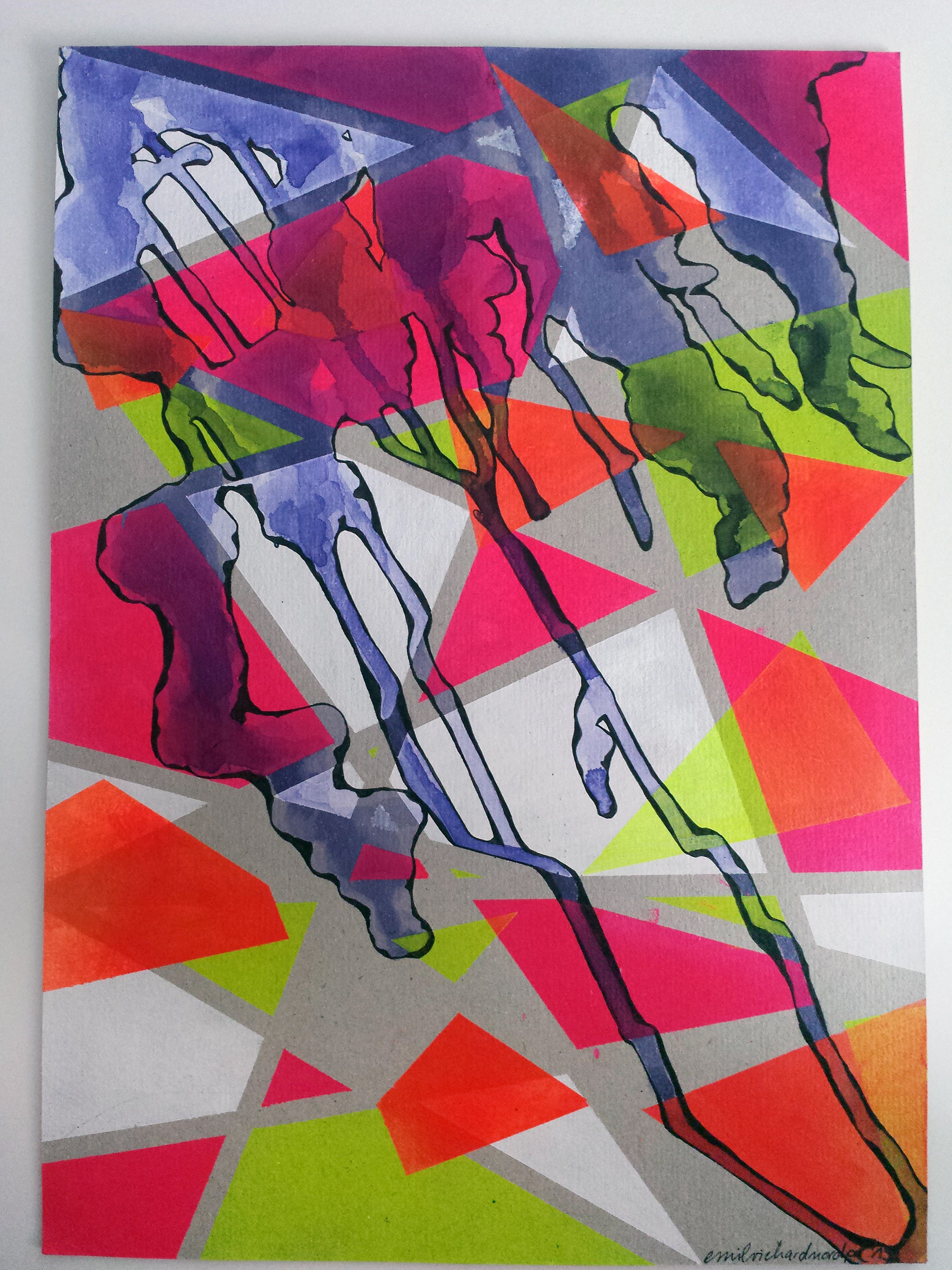 Geometric elements combined with a fluid form of ink. Static and floating.