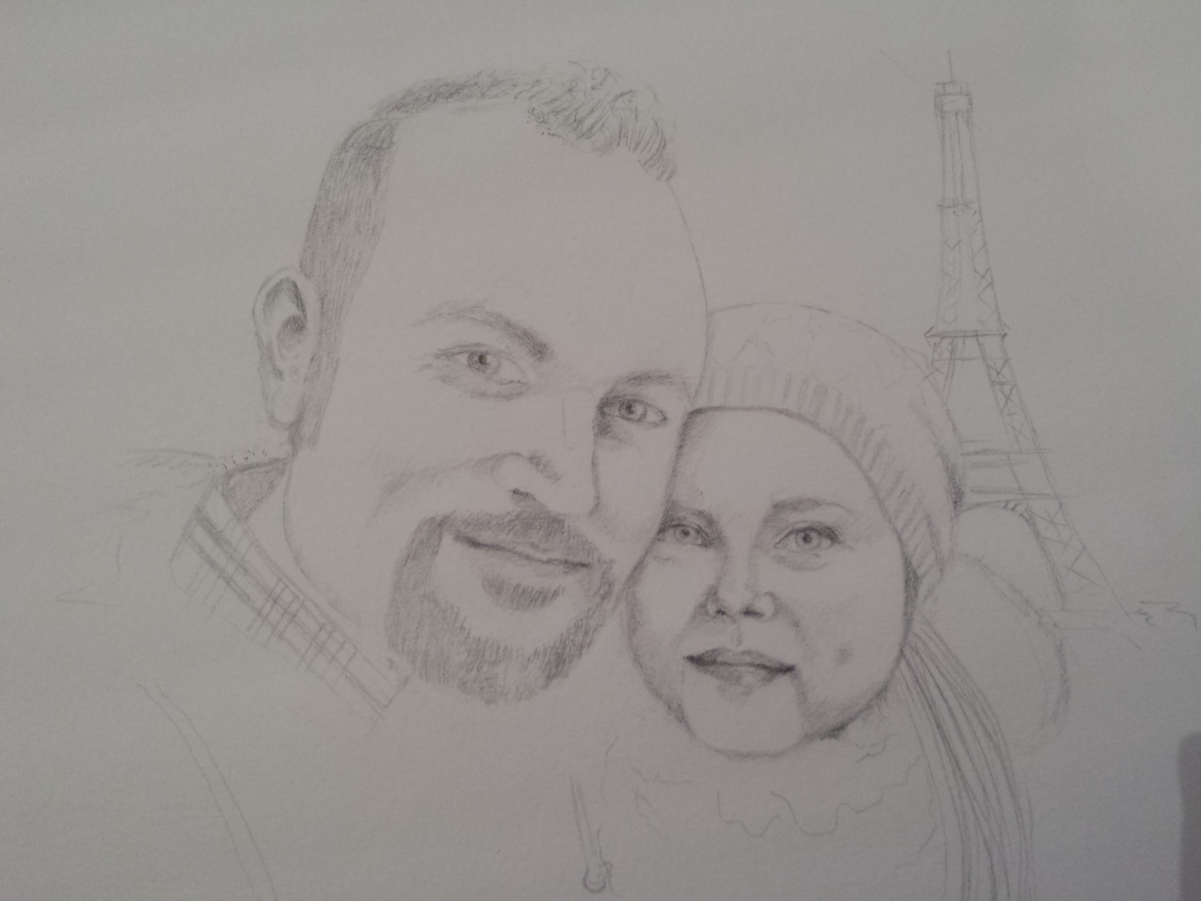 This portrait is a commissioned work for a wedding. It's based on a photo, which was taken by mobile cam as a selfie just after the proposal.